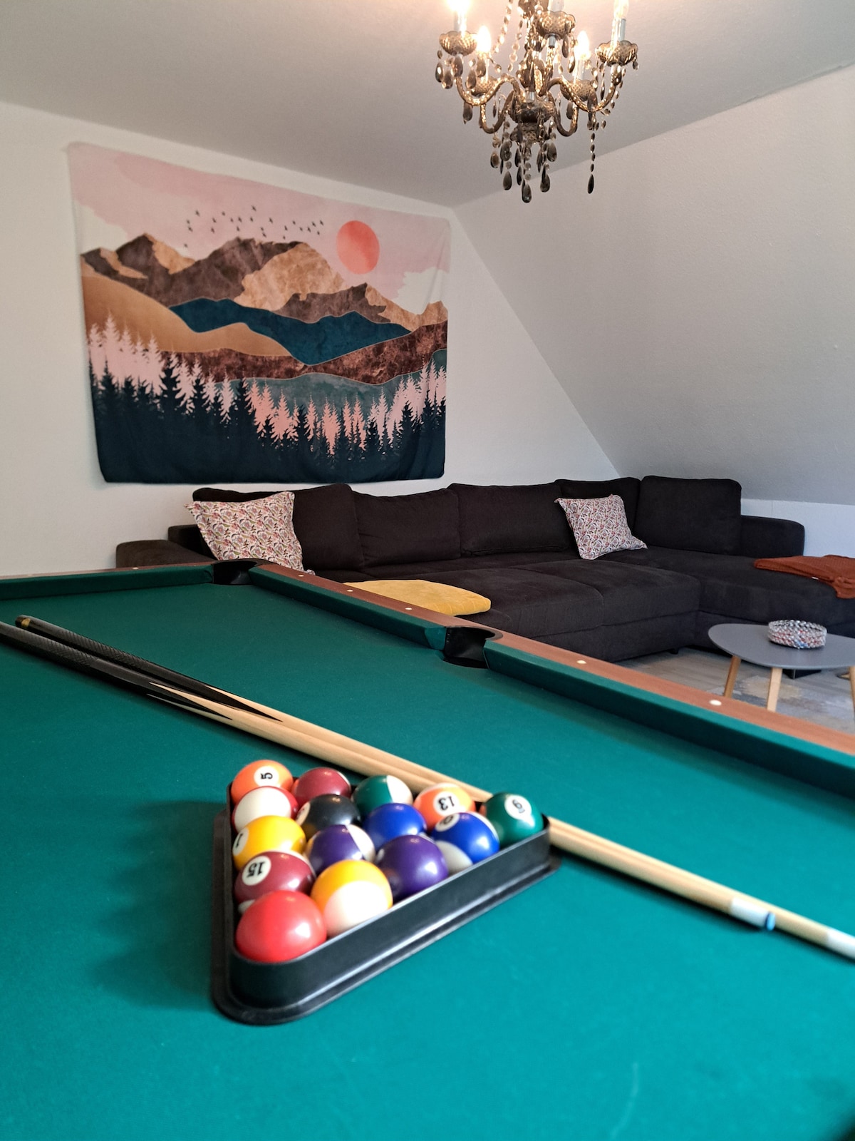 您將住在一棟位於德特莫爾德附近的 1774 年受保護的半木架建築群中,配有古董、電影院、可俯瞰托伊托布格森林的花園。配備齊全的廚房、紅外線桑拿房、配有火爐和電暖的舒適客廳。一間臥室有粘土牆,第二間臥室在屋頂下。房子前面的花園可供烤肉、玩耍等專用。歡迎兒童和寵物入住。距離超市 1.1 公里,距離市區 3.5 公里。包括木柴。