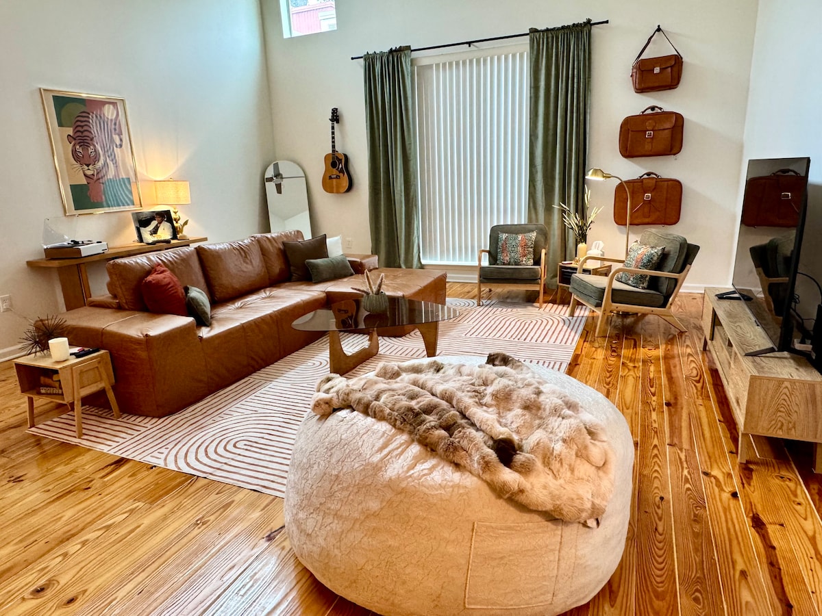 Velvet Tiger是一個設計大膽的中世紀現代空間,距離老虎體育場(Tiger Stadium)僅一英里步行路程,距離巴頓魯治河中心(Downtown Baton Rouge's River Center)僅幾分鐘路程。 在這間3BR/2BA(2張特大床、1張大床和2張舒適的XL床)中,最多可供8位房客享用設備齊全的廚房、舒適露臺上的火坑、自助入住,以及靠近餐廳、音樂會和LSU活動的黃金地段。 無論什麼可能帶您深入南方,都會是難忘的住宿體驗!