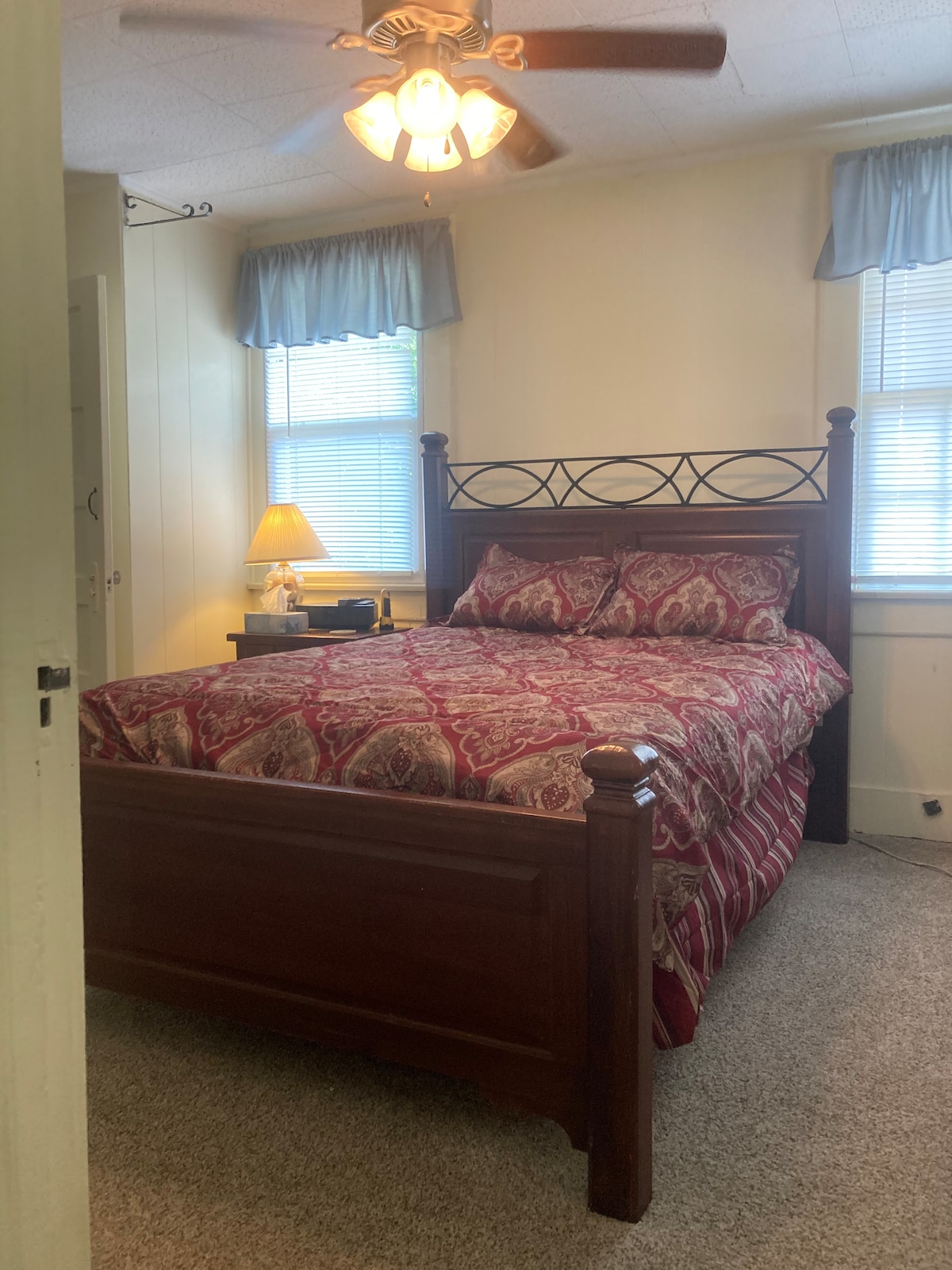 平房- 600平方英尺的平房。 最多可入住2位成人。 平房與主屋分開,配有私人廚房、起居空間、42英寸電視,可使用應用程式。1間臥室配有舒適的可調節雙人床,浴室配有淋浴間。 如有需要,我們會更換床單和毛巾。 外面有監視錄影機。距離CAE機場3英里。 前往南加州大學體育館、哥倫比亞市中心、Vista、河岸動物園、Prisma Health 都很方便。 傑克遜堡、康加里國家公園、26、77和20號州際公路