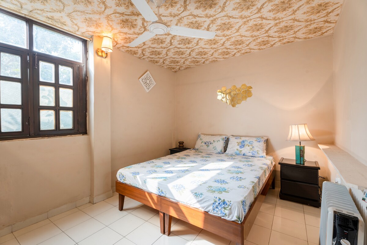 - 1 間臥室公寓,附設設備齊全的小廚房和浴室,位於住宅大樓的一樓。 -所有必要的設備與服務,讓您享受順暢的體驗。 -更換毛巾和洗漱用品。 -配備55英寸電視的WiFi (包括Netflix、Amazon Prime和Hotstar等)。 - 適合情侶入住。 -距離新德裏IGI機場6公裏。 -距離印度航空學院1.3公裏。 -距印度脊柱傷害中心1.4公裏。 -距離DLF Emporio Mall、Vasant Kunj 3公裏。 -距離Fortis醫院4公里