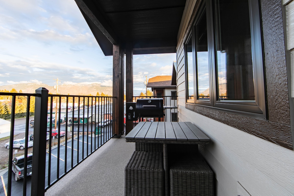這間二樓公寓位於懷特菲什市中心的中央大道300街區,建於2021年,以山區現代特色和舒適的現代感迎接房客! 設備包括2張床、2間浴室、廚房外的餐廳吧台、不鏽鋼電器、瓦斯壁爐和1個地下停車位。在天然氣壁爐旁邊閱讀和喝咖啡,或在露臺上喝雞尾酒,同時欣賞市中心和大山的景色!