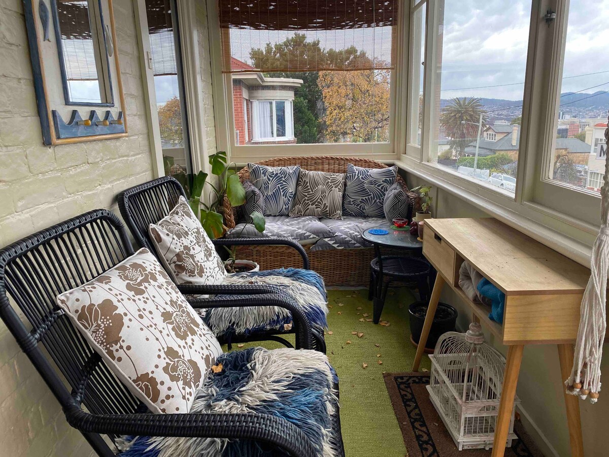 這個隱蔽的角落坐落在霍巴特的歷史街道上,步行即可抵達市區,像一個保守的秘密一樣隱藏起來,提供復古美學和現代舒適的家。 享受自助入住、令人驚嘆的城市和河景, 步行即可抵達很棒的咖啡店、綠色雜貨店、餐廳、酒吧、購物商店和每週日在我的街道上的Farm Gate Farmers Market。 這是疲倦的旅客在探索一天後尋求庇護的天堂,這是我在旅客到訪之間的家。