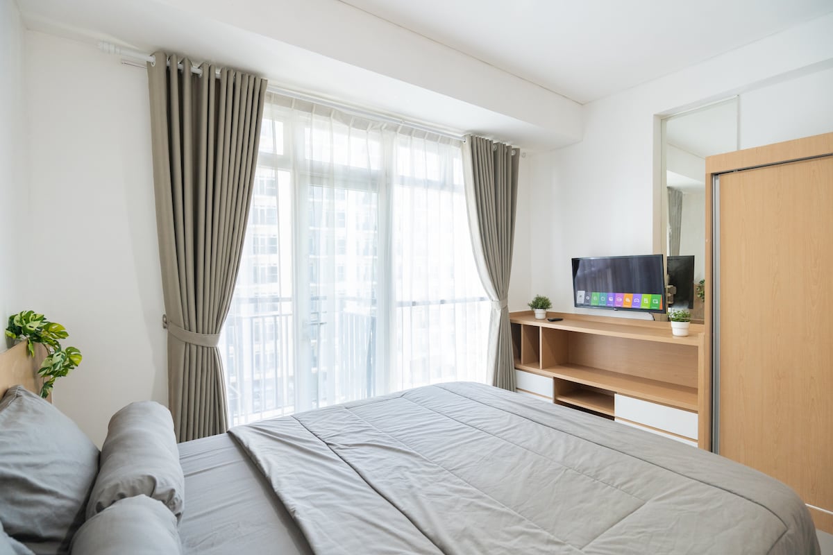 Located on the 22nd floor of Tower A, this studio was renovated in May 2025, featuring a fresh interior with WiFi and Netflix. The apartment is equipped with AC, a refrigerator, a kitchen set, and complete essential living amenities for your comfort. Building facilities include a gym, swimming pool, playground, and 24-hour security. #Suitable for 2 guests. For monthly rental, we will top up electricity with IDR 600,000, which is usually sufficient for one month. Welcome and feel at home 💕