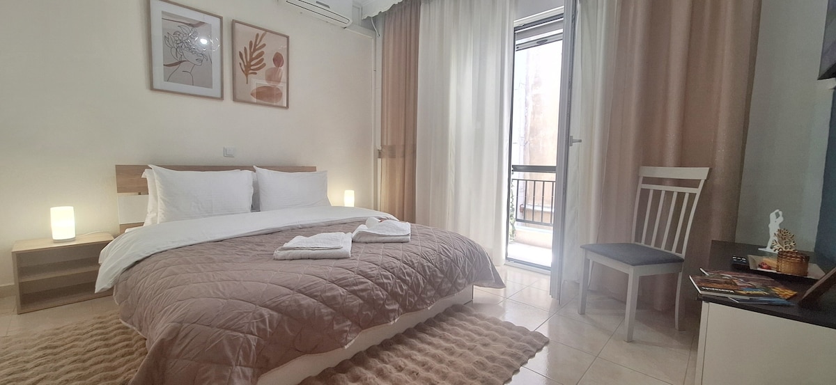 親愛的朋友,歡迎您來到我幾天前創建的全新單間公寓,希望我的房源符合您的要求。 美麗、溫馨且設備齊全的單間公寓已準備好供您使用。 在一個安靜的街區,在伊庇魯斯地區,步行5分鐘即可抵達市中心。 100公尺處有著名的麵包店「Sideris」和超市。 距離巴士站僅200公尺。 社區內有很多停車位。
