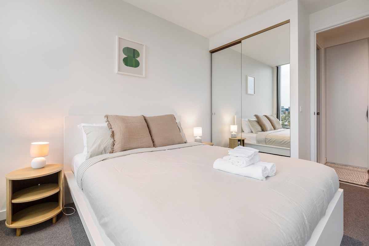 彈性提前入住和延遲退房——您可以視需要延遲退房! 迷人的城市景觀,陽臺是欣賞新年煙火的完美去處。 位於市中心,就在南十字站對面,走出火車站或 Skye 巴士站就能抵達。 對面有 DFO 和 Coles 超市,搭乘電車一小段路就能到皇冠賭場 (Crown Casino)。 抵達時提供一瓶葡萄酒和點心。 世界一流的度假村式設施,包括 25 公尺健身泳池、設備齊全的健身房、桑拿房和攀岩牆。