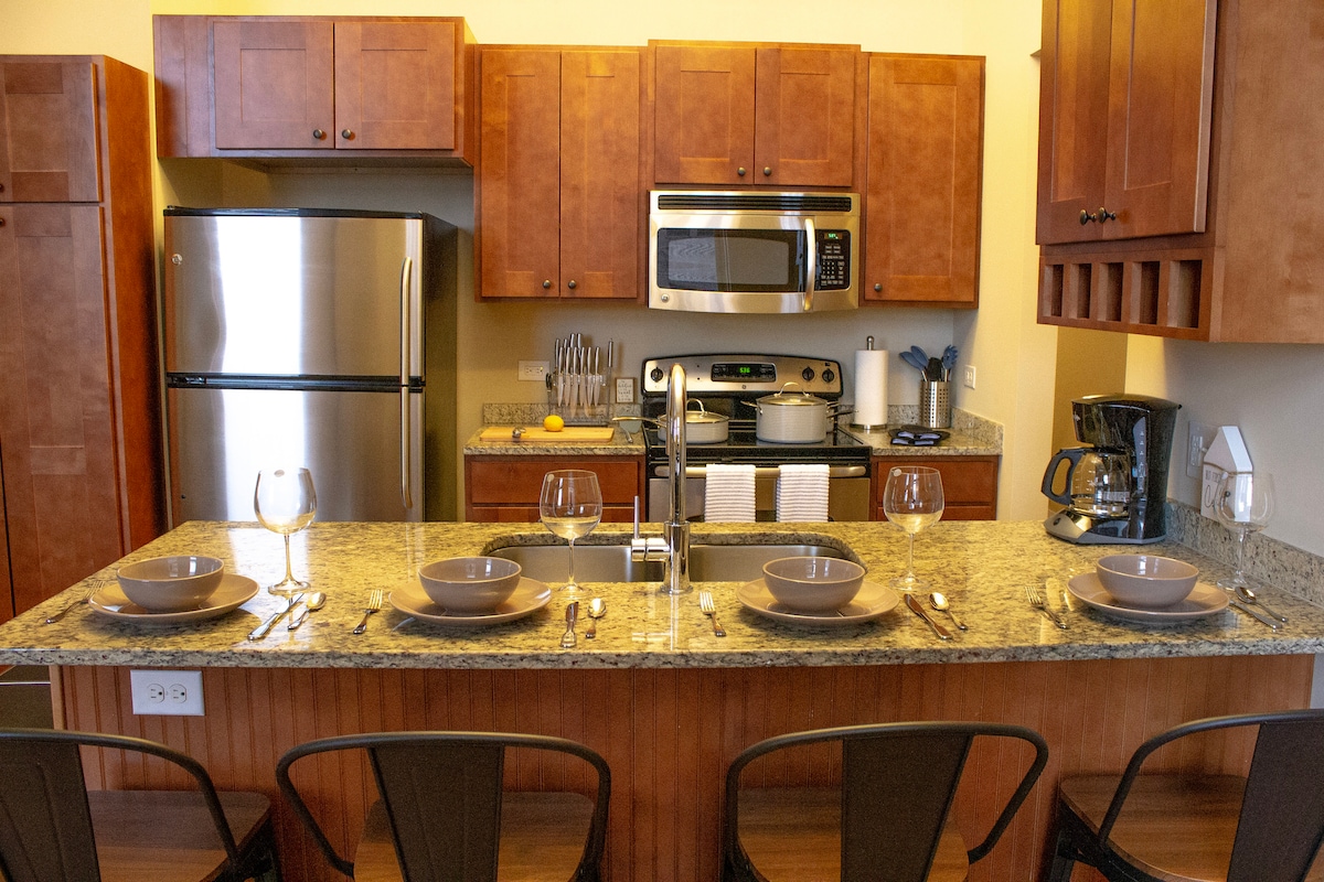 歡迎光臨!這間舒適的兩房套房配有壁爐和按摩浴缸,就坐落在 Summit Avenue 正下方,毗鄰 West Seventh 和 Grand Avenue。 步行即可抵達當地餐廳、Grand Casino Arena 和藝術中心。 * 大賭城競技場:步行 10 分鐘 * Ordway:步行 15 分鐘 * 步行不到一英里即可抵達多家餐廳/啤酒廠。 * 搭乘機場地鐵 54 號線前往市中心。8 英里 這間套房位於 Lako'tyapi 土地和 Wahpekute-Octi'Sakowin Oyate 領地上。