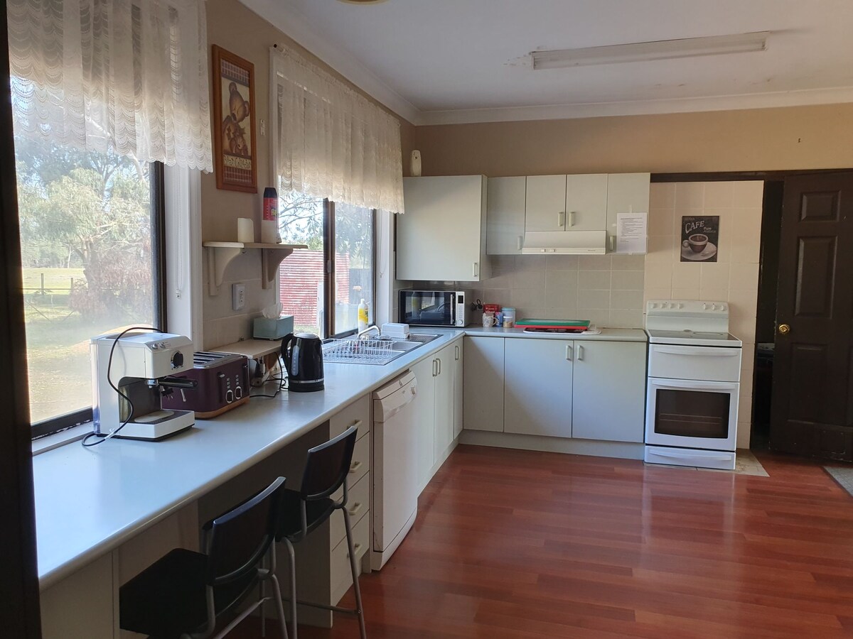 房源建在一個大型農場上。充足的起居空間。非常靠近warnambool、hamilton、coleraine、Mt gambier、port fairy和Portland。距離所有1-2小時路程,這意味著您可以在白天參觀這些城鎮,並在晚上回來。 房子本身有空調,有室內壁爐。完全寧靜愉快。 請與您最近的商店一起享用美食,距離卡斯特頓25分鐘路程。農場上的動物來來去去,但您可以自由踢足球板球或放風箏