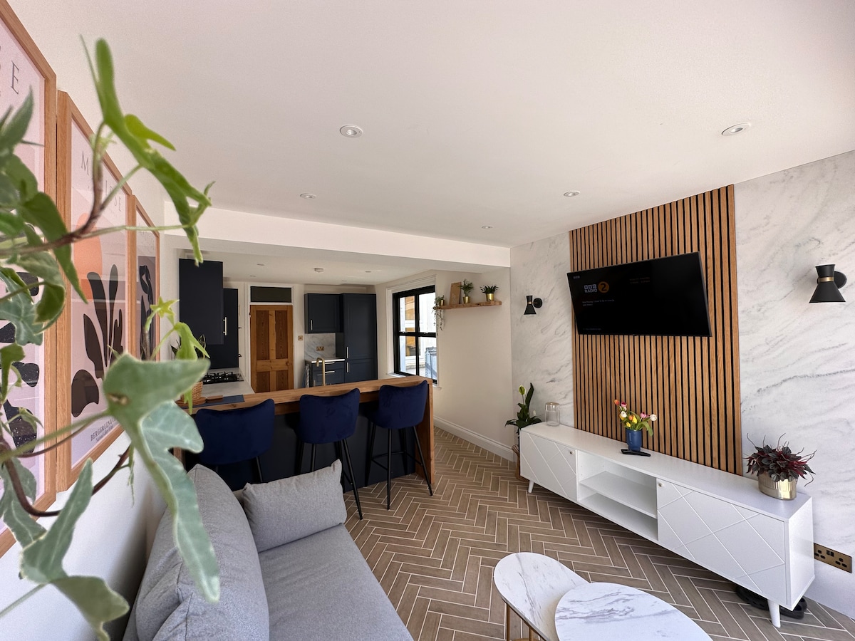 This gorgeous large studio apartment with separate entrance is contained within an historic Georgian house, minutes from the ocean. Peace and quiet are ensured by a large well tended front garden with off street parking. The accommodation has a spacious shared patio, giving way to an established secluded garden. The apartment boasts a stylish fully fitted kitchen and leather Chesterfield sofa, chairs and a large comfy bed . There is an EV charger in the garage 55p/KWH