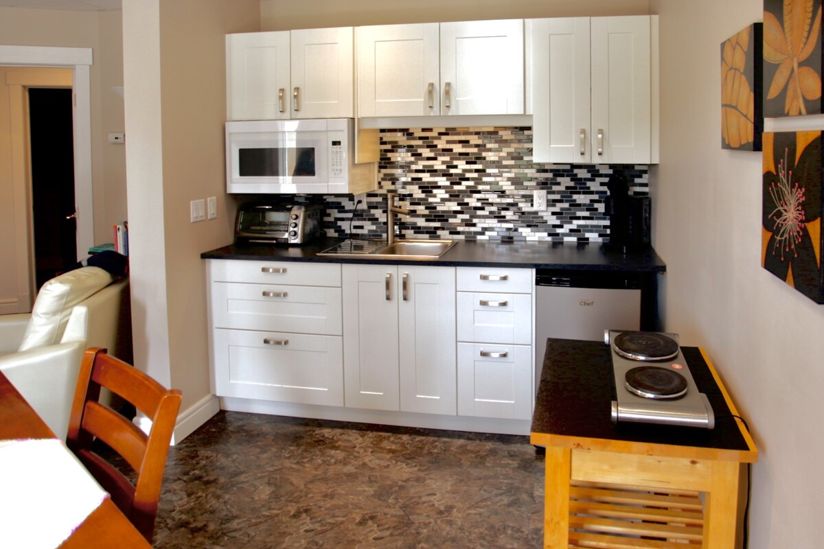 Large private studio provides modern, clean, bright comfort. Shared bathroom immaculately clean. One Queen size bed with luxury bedding, Endy sheets, bath robes, so cozy, you will never want leave. Fully equipped kitchen provides coffee, tea, Kurig, French Press, microwave, dishes, stainless pots, pans. Laundry facility for longer stays. Entryway provides snacks for a nominal fee. Pop, Redbull, Gatorade, Orange Juice and Bottled Water. Also chips and chocolate Bars.