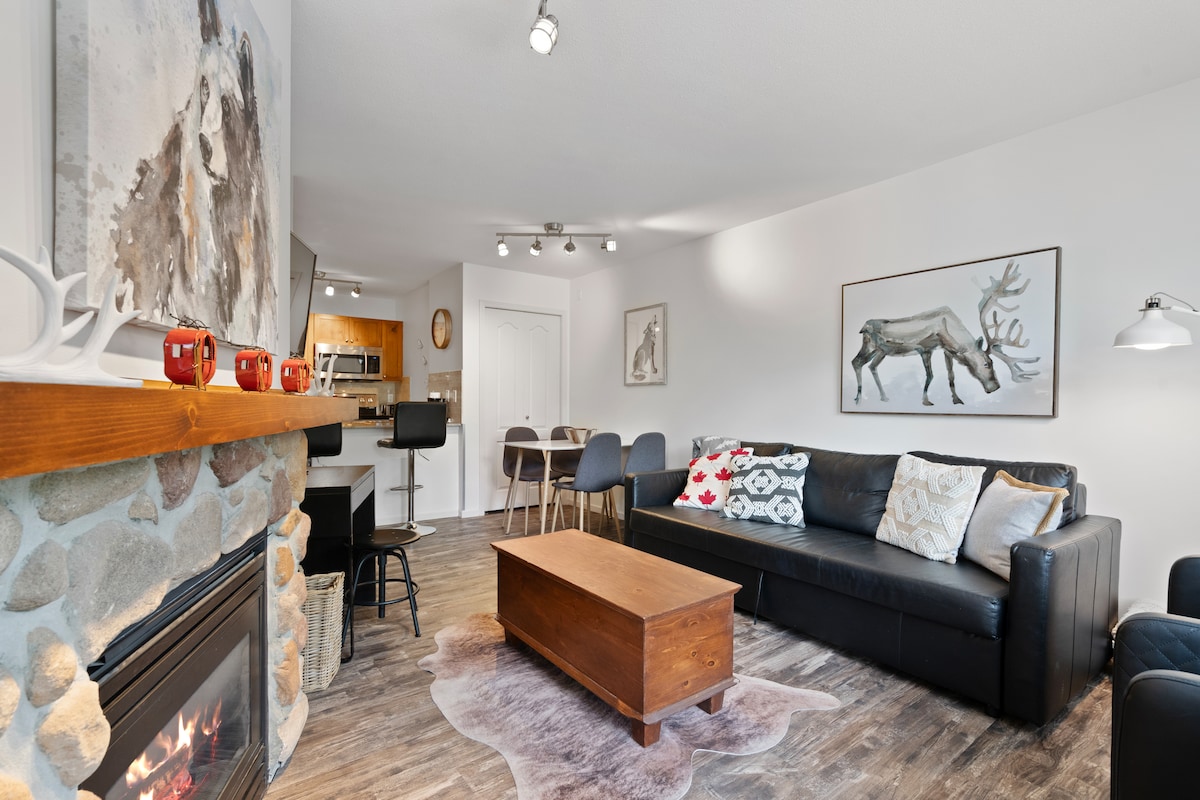 🛋️ 舒適現代-一樓套房、舒適的壁爐、設備齊全的廚房、最多可舒適入住4位房客 🎿 Easy Gear Storage –前臺提供免費且安全的滑雪和自行車存放服務。 🚗 停車和洗衣–地下安全停車位和現場洗衣設施,提供洗衣精。 🏔️ 黃金位置:距離黑梳山腳下的 Excalibur Gondola 幾步之遙 🏊 度假村式設備–關閉:戶外泳池、兩個按摩浴池和現場健身房。