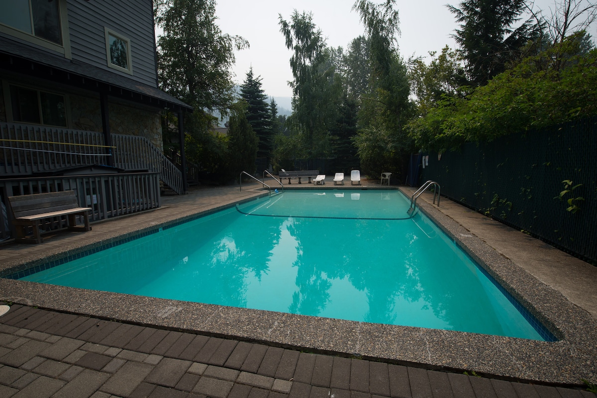 Welcome to your Whistler Escape! Located in the Whistler Creek Lodge, enjoy views of Whistler Mountain from the sofa. All amenities are within walking distance: ski lift, restaurants, groceries, rental shops, parks, etc. ✔ 5 mins to Creekside Gondola ✔ FREE Parking ✔ Hot Tub ✔ Full Kitchen ✔ Queen bed & pull-out couch ✔ High-Speed WIFI / Netflix / Cable ✔ Fireplace w/ electric insert (provides heat + ambience) ✔ Outdoor Pool (summer) Bonus: Creekbread Pizza restaurant downstairs