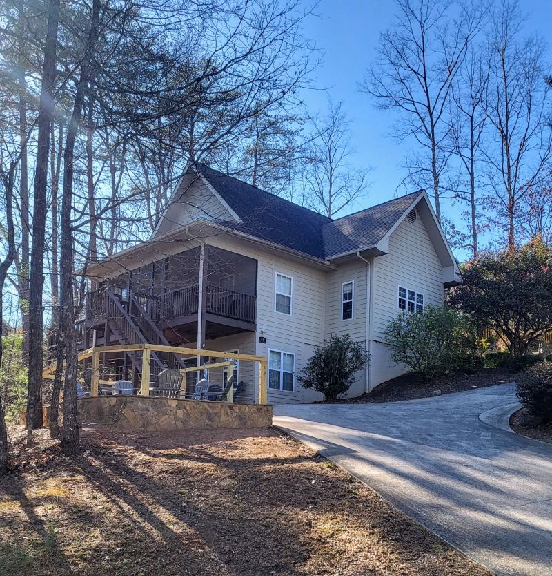 Forget your worries in this spacious and serene space. New construction, completion 8/24. At approx. 1600 s.f., you have plenty of space. Located in gated golf community of Innsbruck, Helen. This is a spacious 2 bed 2.5 bath, 15 min walk to town. Screened rear deck, front porch, handicap accessible, hot tub, fire place, parking for 3 vehicles, two king beds plus pull out queen. Located at quiet end if street, no house parties, quiet hours strictly enforced.
