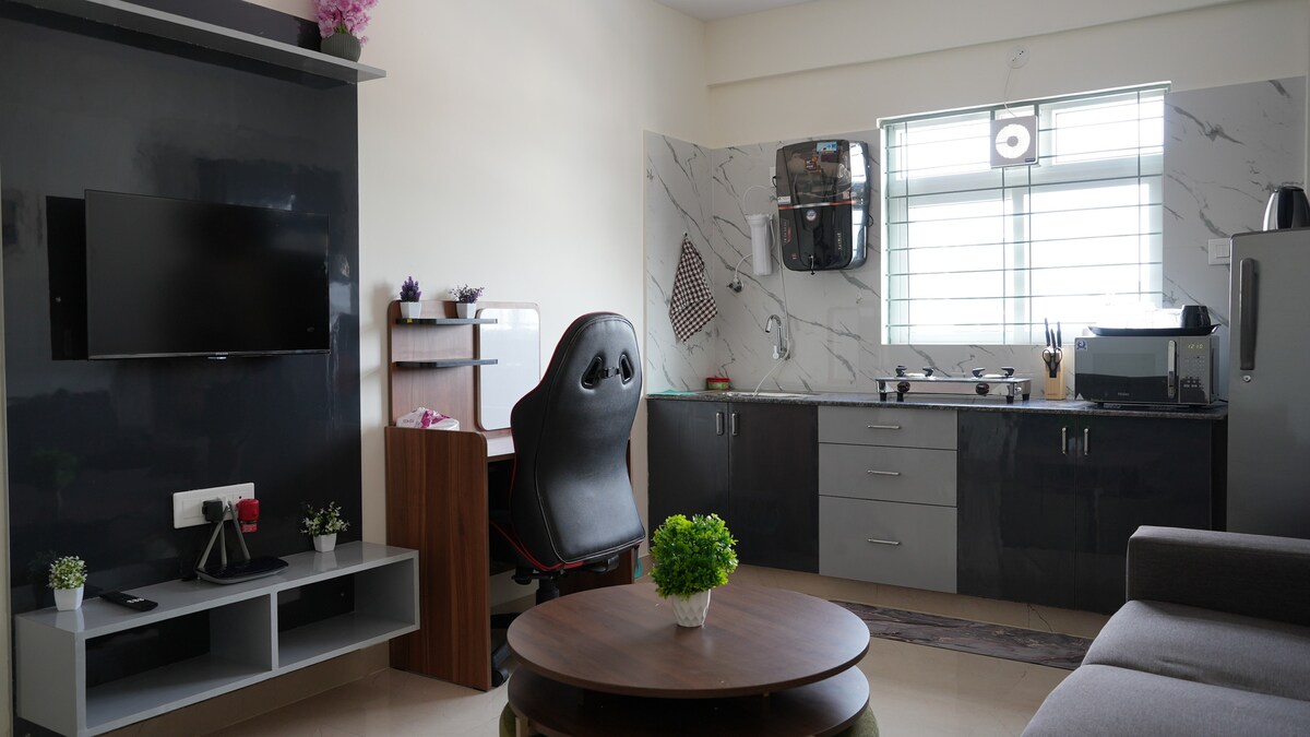 前往Bagmane Constellation Park、Amazon、Go0gle、Sapient、Airbus、Samsung、Tata Elxsi、SAP Labs的商務旅客會發現這個空間是住宿的理想選擇。 設備齊全的私人公寓,配備浴室、WiFi、迷你冰箱、迷你冰箱、電磁爐、工作桌和牀。 我們有一位居住在看管人,方便輕鬆入住,並滿足您的需求。 步行5分鐘即可抵達Seetharampalya地鐵站。