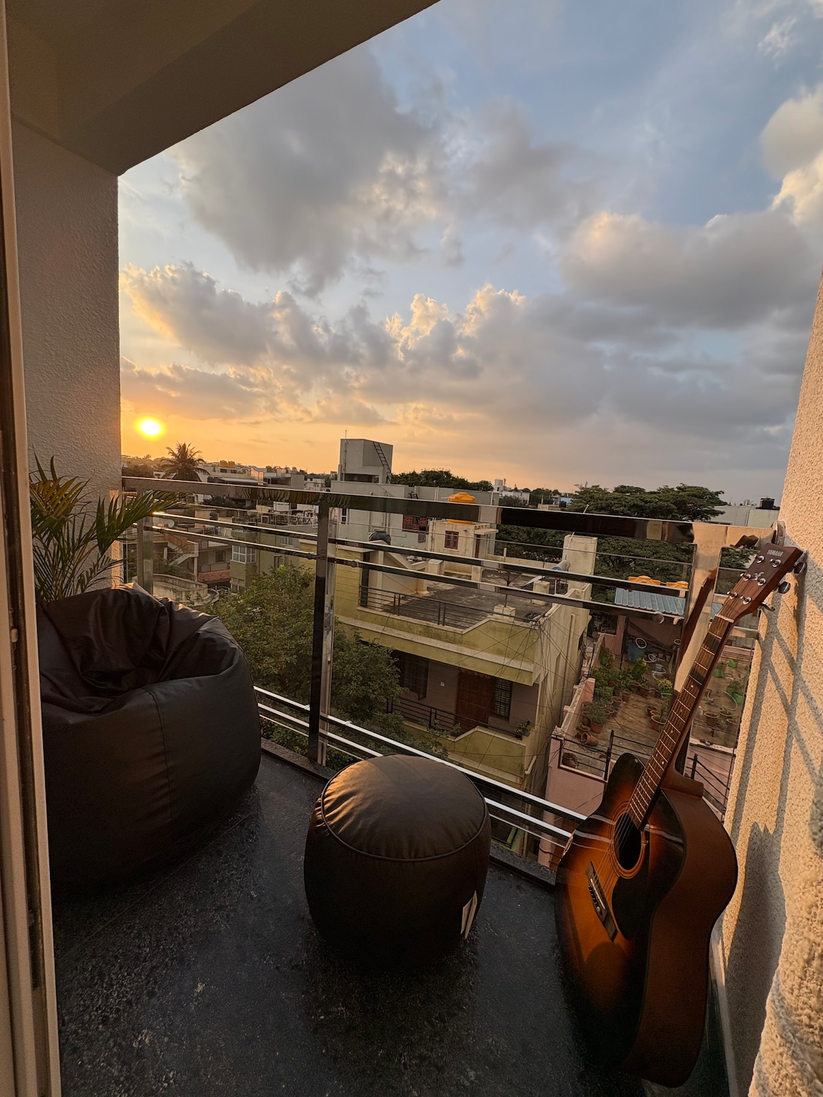 我們很樂意在我們的1 BHK (EARTHY Homestay )接待您,這裡融合了風格與質樸、寧靜的氛圍和無與倫比的全景。 -陽台綠洲:森林景觀+ 200公尺處的電影日落 -最佳位置:距離NIFT 2分鐘,距離27th Main咖啡廳、精品店和街頭美食3分鐘 -寧靜的室內裝潢:雙人床、環境照明和茂盛的活植物 -工作和娛樂:高速Wi-Fi、大電視和新鮮空氣 在這間舒適的度假屋中,體驗獨特風格、寧靜與壯觀的日落景色! - 5樓(無電梯)