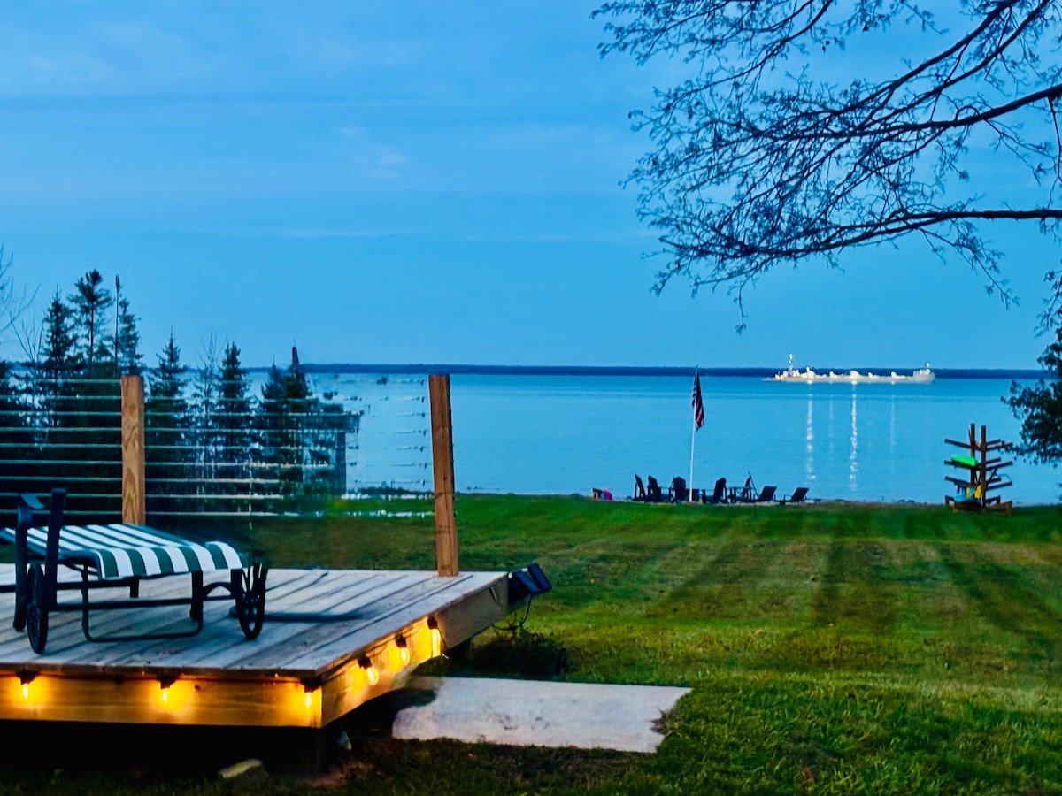 Relax in the serenity of Paradise View’s incomparable perspective of Whitefish Bay every morning when you awake. You will enjoy sun and moon rises from your living room, watch the birds, the freighters and the ever-changing moods on the bay. If you love hiking or snow shoeing, bird watching, cross country skiing or photography – this is the place for you. When winter arrives, we get lots of snow! Located just 14 miles from Tahquamenon State Park & 1-1/2 miles from Paradise.