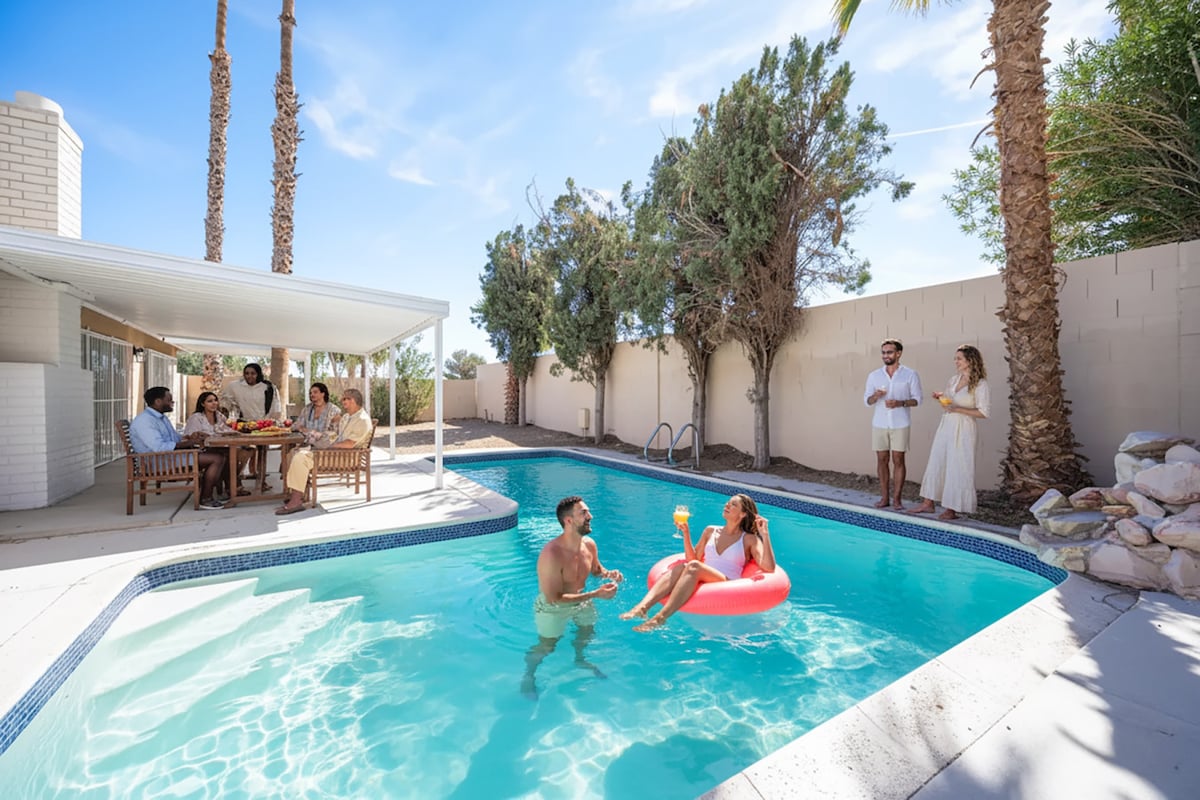 歡迎來到我們迷人的Airbnb度假屋,這是一個真正的度假勝地,距離令人眼花繚亂的拉斯維加斯大道僅16分鐘路程。我們的房源配有2間寬敞的臥室、清爽的泳池和現代化的設備與服務,完美融合了舒適、時尚和便利。我們的Airbnb位置優越,可輕鬆前往附近的各種設施和服務。附近有設備齊全的健身房、Whole Foods Market,以及著名的In-N-Out,讓您快速享用美味佳餚。