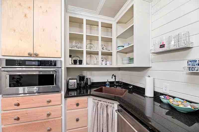 這間寬敞的套房配有皮革沙發和椅子。這些特點會讓您感覺像「家一般舒適!」 在可愛的前門廊的搖椅上放鬆身心,享受真正的「娛樂」。相鄰的廚房用餐區域設備齊全,配有小型冰箱、爐子、微波爐和咖啡/茶站。這間小屋擁有簡單但優雅的鄉村家居感。大山核桃樹上有一個大鞦韆,對於尋求刺激的人來說很有趣。