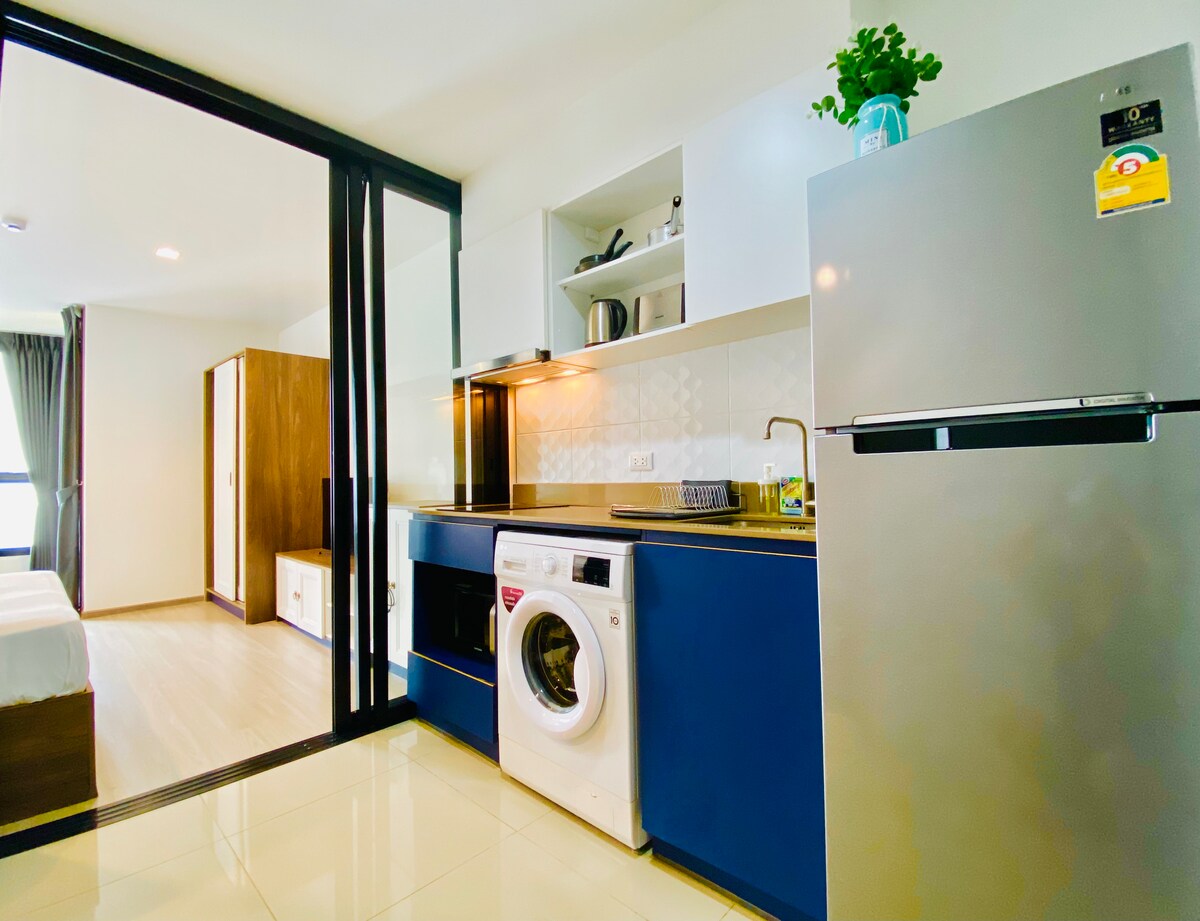 歡迎來到普吉島市中心的放鬆住宿! 這間位於普吉島Phyll的全新舒適1間臥室公寓非常適合情侶或獨行旅客。 享受私人陽臺、全套廚房和度假村式設施,包括泳池、健身房和共同工作休息室。 步行5分鐘即可抵達普吉島中心,開車10–15分鐘即可抵達普吉島舊城區和芭東海灘,是短期度假和長期住宿的完美基地。 🏝