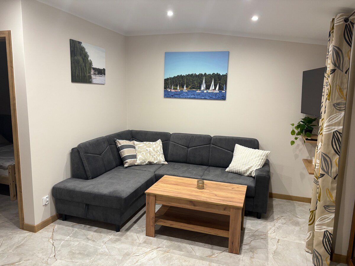Zafunduj sobie odpoczynek i wyciszenie. Stylowy apartament w spokojnej okolicy 1,5 km od centrum miasta z dużym balkonem i bezpłatnym miejscem parkingowym. Self check in. Zlokalizowany na I piętrze trzy piętrowego, nowoczesnego bloku z windą. Wyposażony w lodówkę, mały express do kawy, pralkę, suszarkę, płaski telewizor, wifi, bardzo wygodne łóżko. Świetna baza wypadowa do zwiedzania miasta i okolicy. 1km od PIASKOWNICY- miejsca dla miłośników off road. Miejsce do przechowania kilku rowerów.