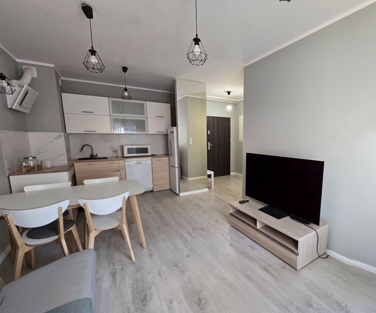 GALERIA公寓坐落在Zielona Góra的中心,坐落在遊廊上,是一個有歷史的地 方。我們提供76米的美麗布置空間。 公寓內有臥室(配有舒適的雙人牀)、現代化浴室、設備精良的廚房和時尚的客廳,配有休息區域和一張可供兩人使用的額外牀。 在這裡,您可以找到舒適的工作空間、寬敞的衣櫃和電視/WiFi。