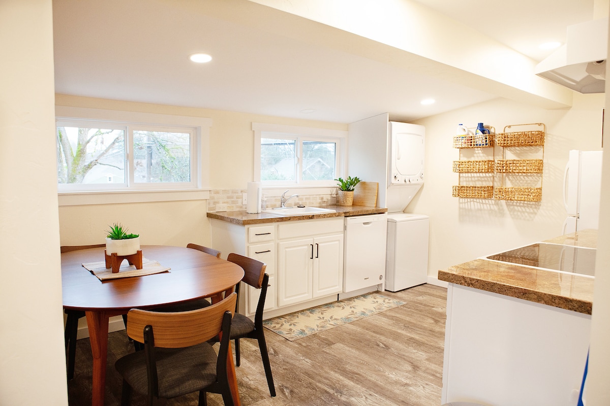 在我們美麗的單臥室工匠之家中,融合現代設計和百年建築,像當地人一樣生活。這個私人空間位於時尚的肯頓(Kenton),位於一條安靜的街道上。郁郁葱葱的前院是坐下享用咖啡、當地啤酒或葡萄酒的好地方。在全套廚房中烹飪您在波特蘭眾多農夫市場之一購買的商品。然後在舒適的雙人床上睡個好覺。來看看波特蘭的獨特之處!