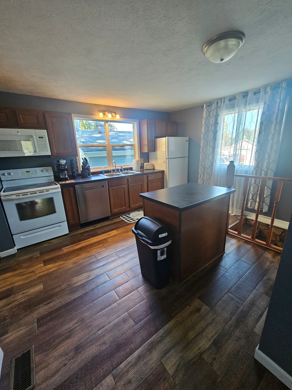 舒適的2間臥室,位於VA醫院附近,距離宇宙中心的所有活動僅一箭之遙;伊利諾州馬里恩! 客廳配有原始硬木地板,整體配有中世紀現代裝飾。2間臥室,兩張雙人床,提供所有床單。 設備齊全的廚房,配有微波爐、爐具和冰箱。 餐廳配有2張吧臺椅。享受早晨的咖啡,配有雙咖啡機;煮一壺咖啡或使用您最喜歡的咖啡包。有圍欄的後院和1個車庫供房客使用。