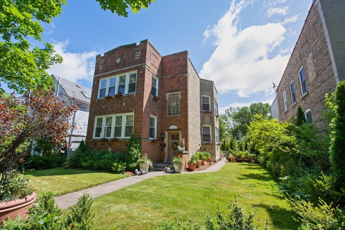 從您的私人客用住房享受我們秘密花園的寧靜。 在有遮蔽的陽台享受隱私。 在花園中觀賞蝴蝶飛舞。 在露臺上聆聽傍晚的寧靜,俯瞰花園。 從不拘一格的收藏中旋轉一些唱片。 漫步在綠樹成蔭的街區。步行5分鐘即可抵達Divvy自行車站,您可以前往芝加哥和CTA/Metra火車站。 短途車程即可抵達湖畔、西北部、市中心。