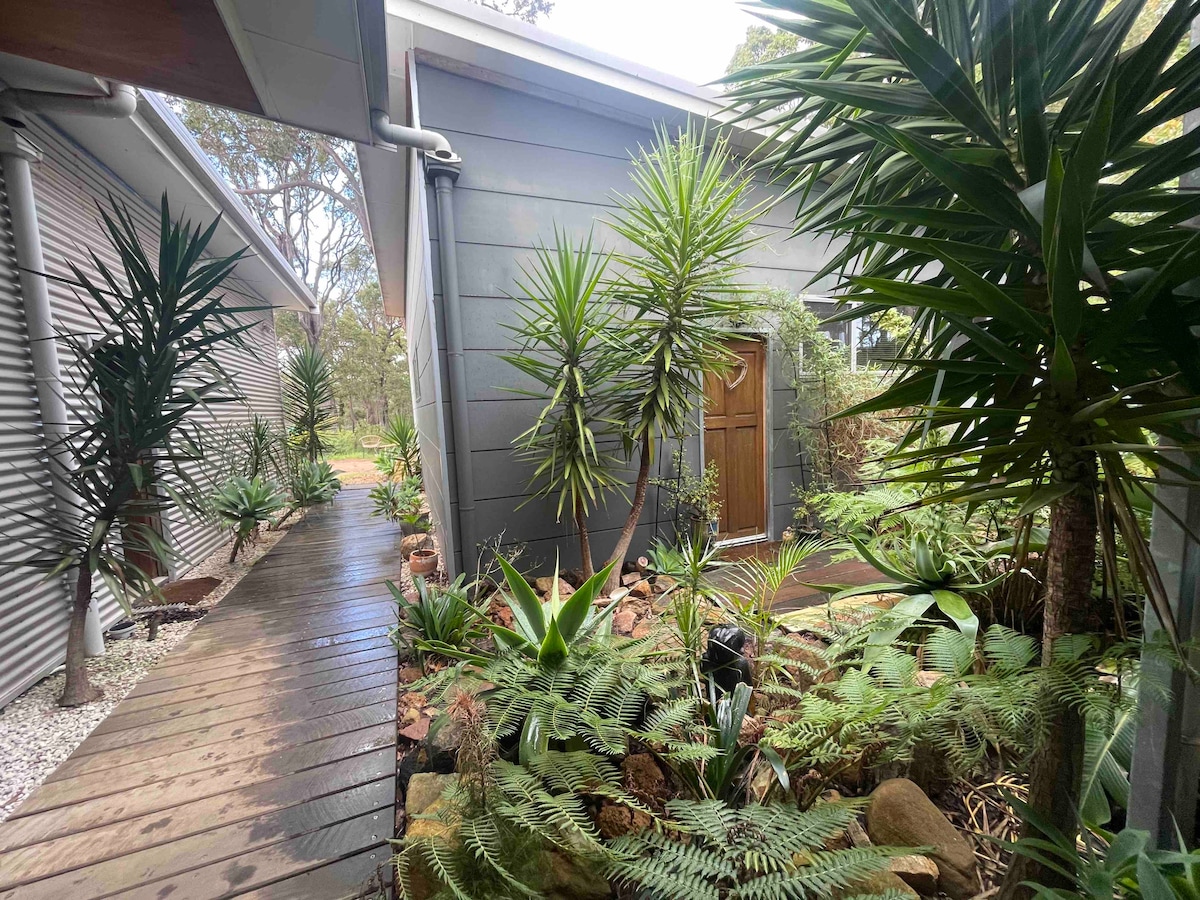 Koonga Maya adults only retreat in the Gunyulgup Valley amongst Jarrah and Marri trees overlooking the gully close enough to the crystal clear waters of Smiths Beach which you can hear in the winter months. Our shouse has a rustic homely charm with a relaxed feel after a day of exploring wining and dining. Close to the main residence however private and quiet. The space is for Adults only and no pets. Selection of tea coffee and small breakfast items included with fresh eggs