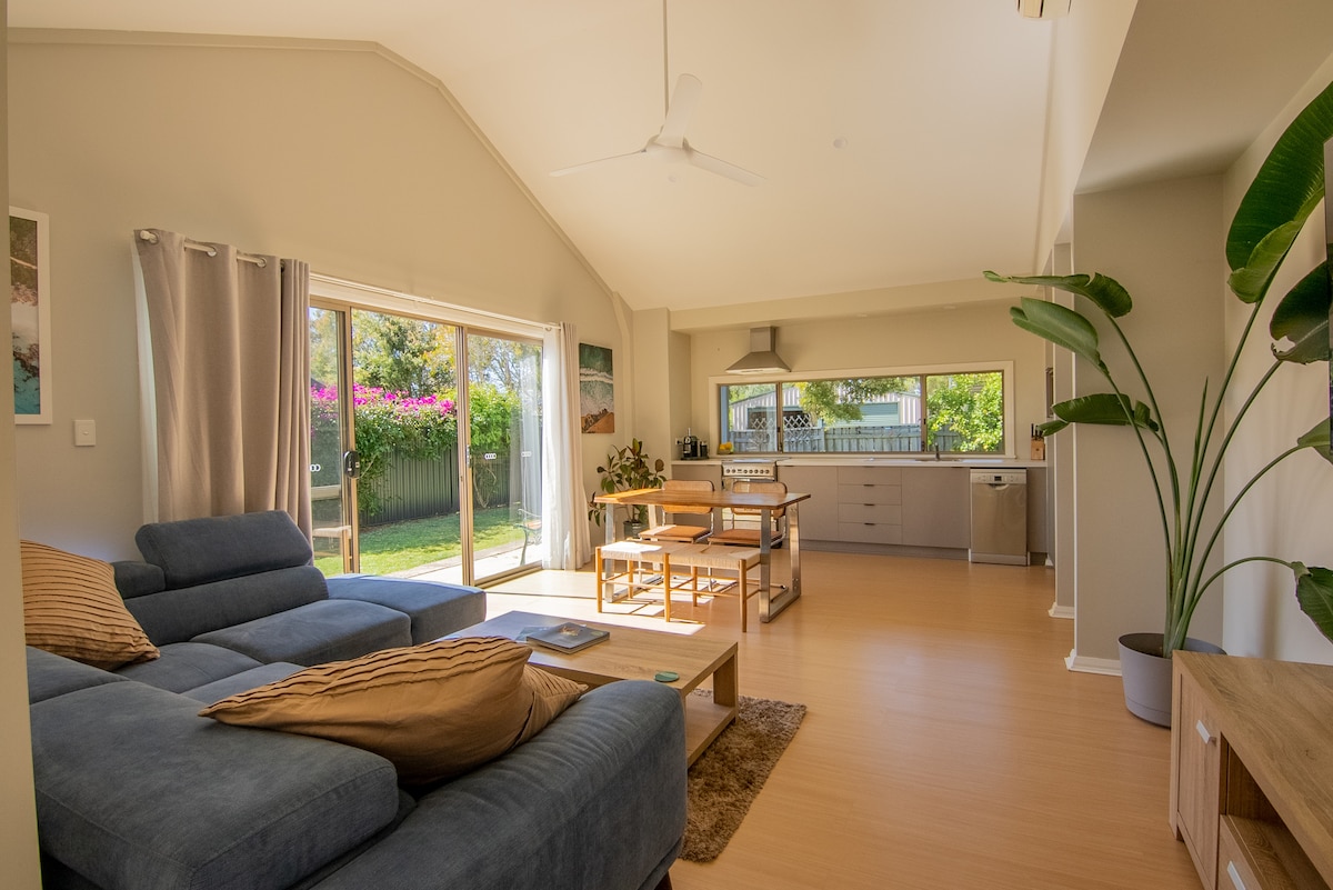 Charming air-conditioned 1BR cottage nestled in peaceful leafy gardens, just a 2-min stroll to the beach. Features a king bed with hotel-quality linen, spacious bathroom with spa bath, private BBQ, and outdoor seating. Enjoy Smart TV, Wi-Fi & Stan. A scenic 3.7km walk or bike ride (BYO or hire) into town. Quietly located, it's an ideal base for exploring the region’s renowned wineries and natural beauty. Please note: no ocean views, no pets. Adults only.
