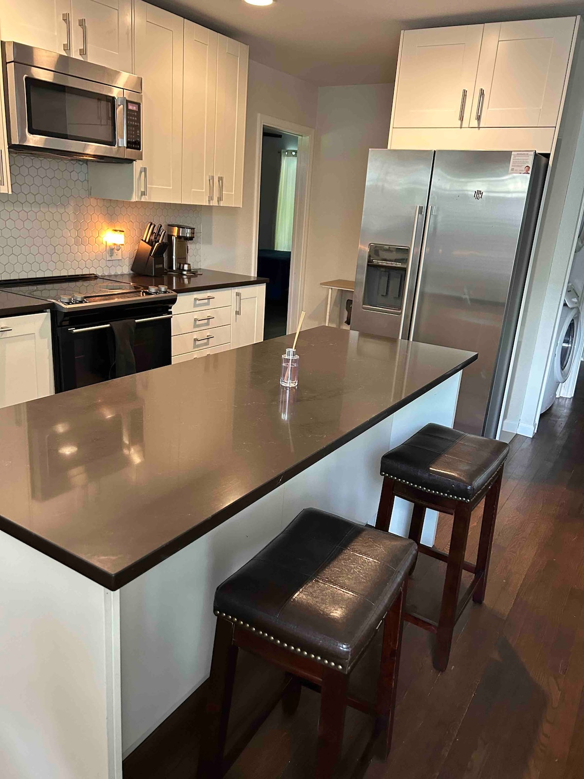 嘿, Ya會!歡迎來到我們的奧斯汀主客用套房改造。 我們距離全新的Q2足球場、Domain、Dell和三星4英裏。 距離市中心、F1、Lake Travis、Greenbelt和Austin機場僅需15分鐘。 這是一個轉換。生活空間充滿了您在旅程中可能需要的一切物品,包括一個小廚房,配有水槽、微波爐、迷你冰箱、咖啡、茶、帶桌子的私人露臺和全新的豪華浴室。 我們現在提供長期住宿和延長住宿,可享25%的折扣