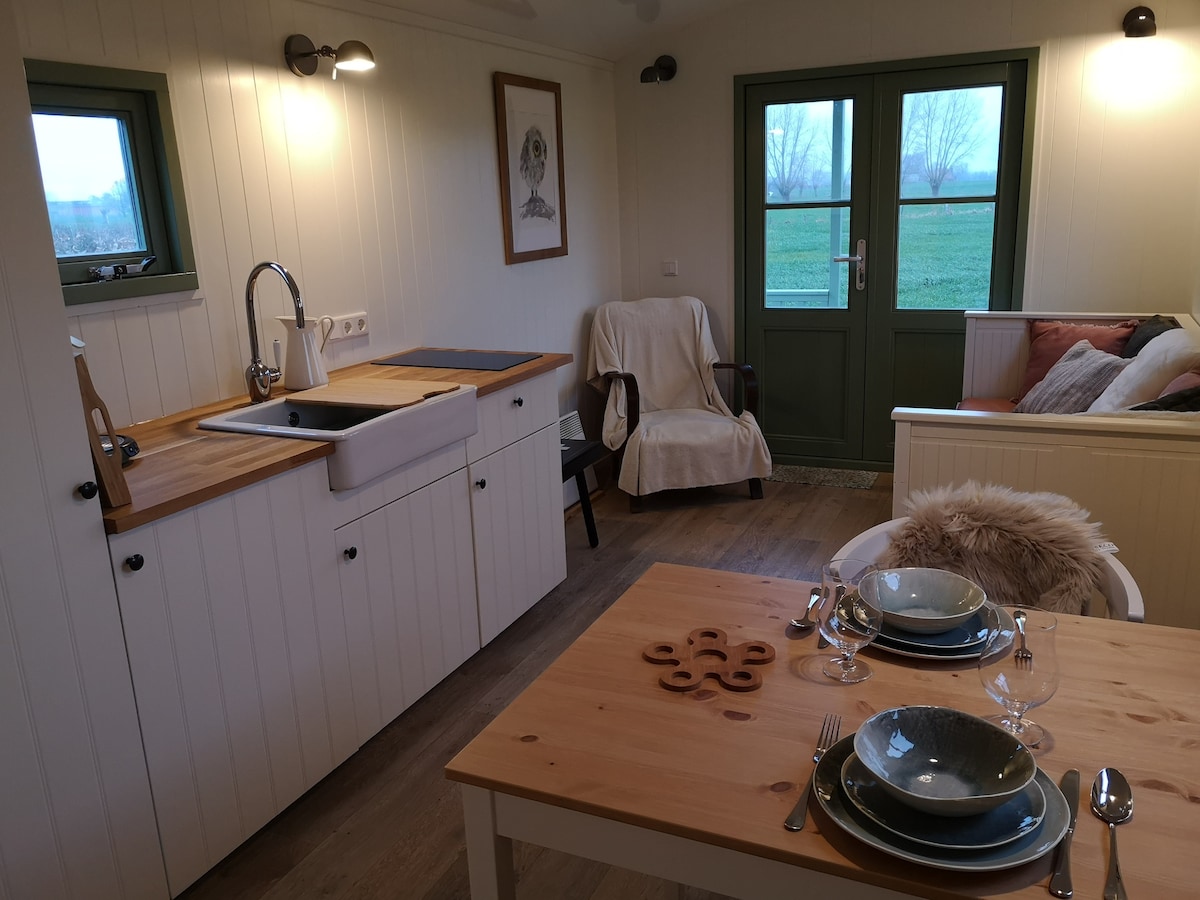 在田野中設備齊全的大篷車中,遠離所有的喧囂。 享受簡單的生活,沒有每一天的航班。 大篷車內有一張雙人牀、安靜的閱讀區和舒適的用餐區域。 在獨立的戶外廚房中,如果需要,您可以自己烹飪。 還提供獨立廁所和室外淋浴間。 花園有許多座位區域,每次都能呈現不同的氣氛。 早餐 可以額外訂購。