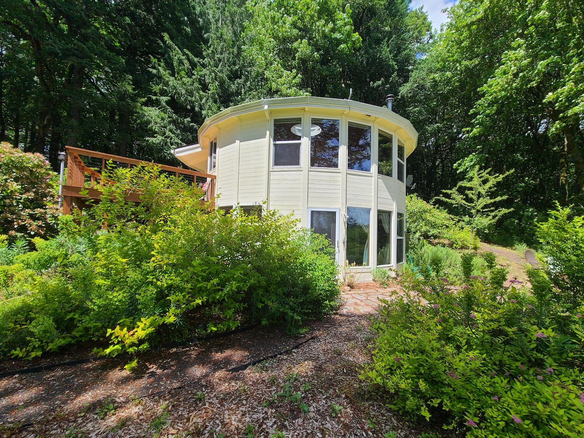 這間寧靜的圓形房屋提供遠離城市生活的度假勝地。這間房源佔地超過20英畝,提供完全的寧靜、放鬆和下方美麗的威拉米特谷(Willamette Valley)的壯麗景色。設計提供開放式樓層平面圖以及獨特的圓形生活體驗!房源距離Amity和McMinnville的許多酒莊和餐廳僅幾分鐘路程。