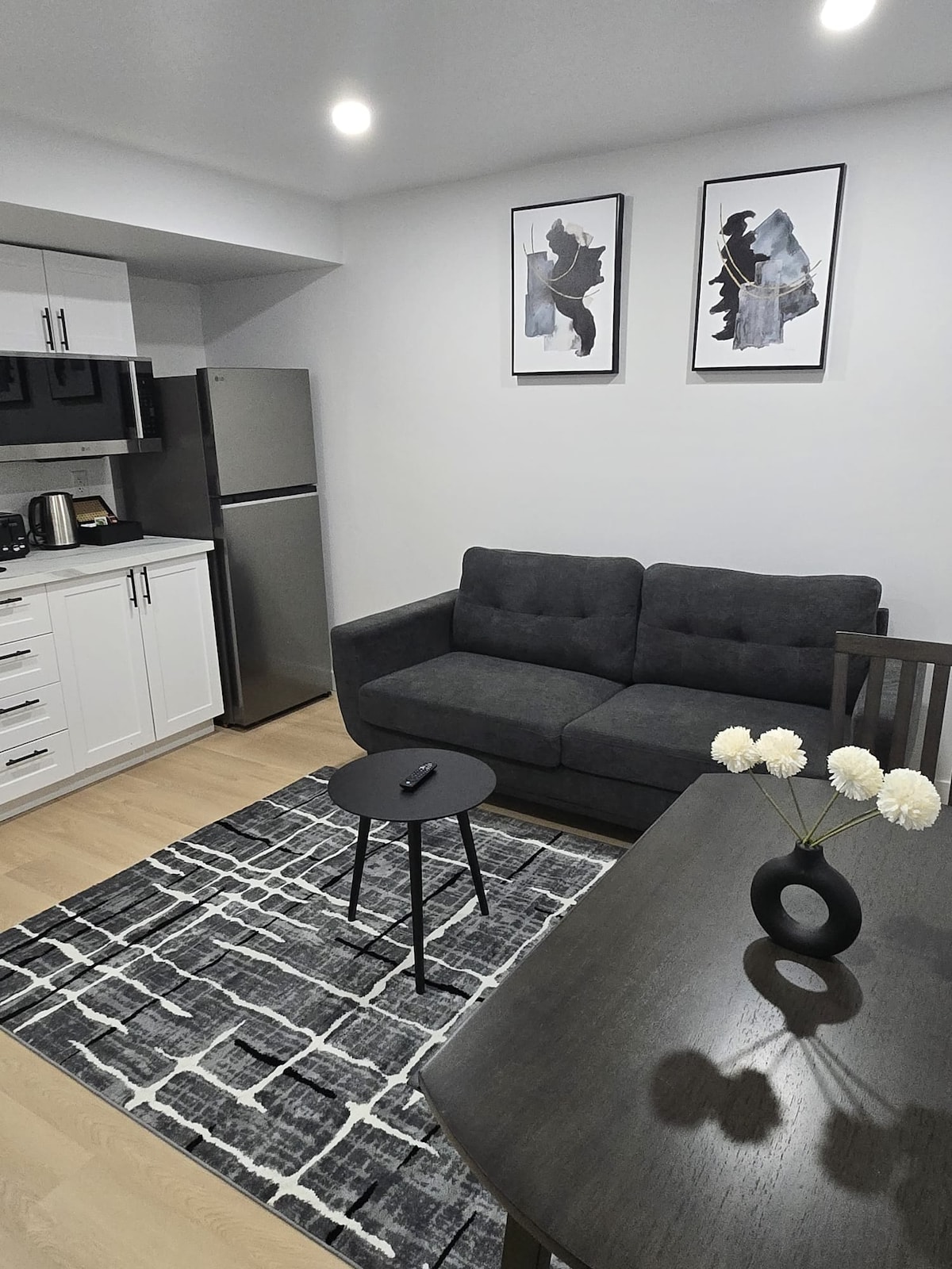 Welcome to our private 1-bedroom basement suite in the friendly community of Devonshire Park, Transcona, Winnipeg. This suite combines comfort, privacy, and convenience. Located just minutes from Regent Ave shopping, Costco & Club Regent Casino. The space: • 1 cozy bedroom with queen-size bed & fresh linens • Comfortable living area with sofa & Smart TV • Kitchenette with full fridge, microwave, kettle, toaster • Private 3-piece bathroom (shower, sink, toilet) • Private washer & dryer in-suite