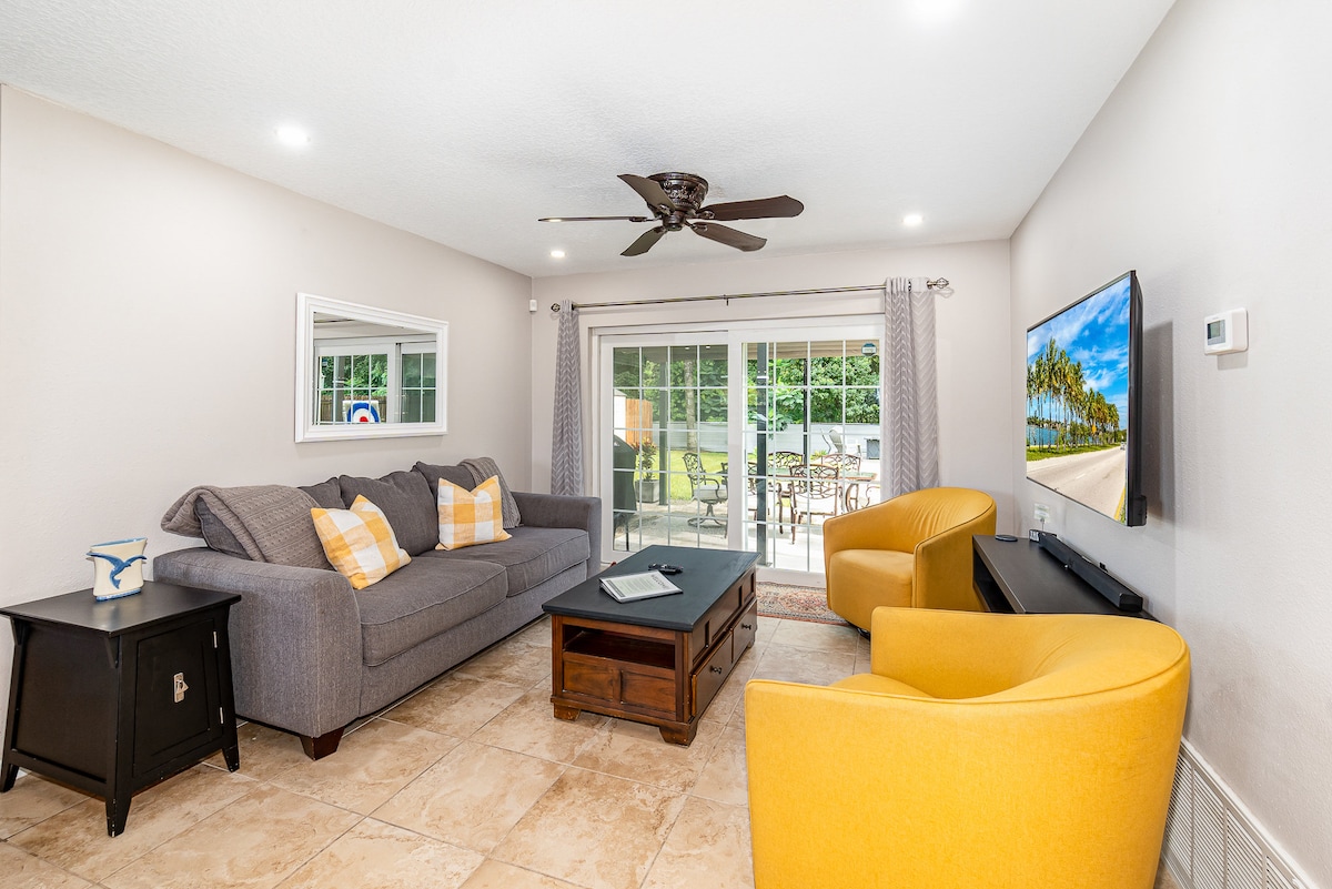 與房東分享安靜的後院和泳池。 一半在迪士尼和海灘之間。僅限12歲及以上。 沙發可延伸為單人床。 距離州際公路4號幾分鐘路程。 不是溫水泳池。 輪椅可以使用。車道入口大門39英寸-通往坡道入口的通道32英寸-滑動入口33英寸-臥室門35英寸-淋浴間(無台階)35英寸-洗衣房32英寸-衣櫃35英寸-標準櫥櫃。 我們沒有獲得身心障礙認證,但大多數輪椅房客都沒有問題。 浴室有安全扶手。