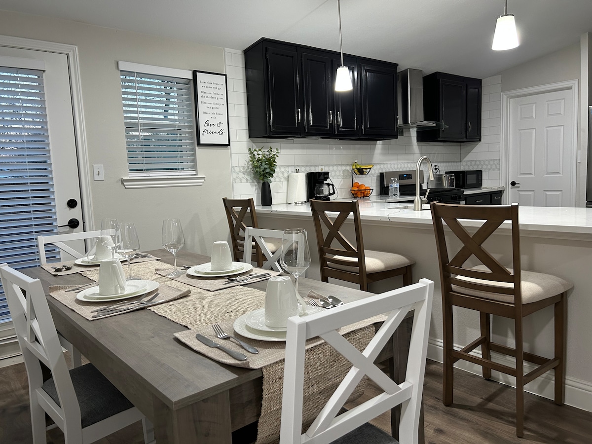 坐落在德州迪凱特市中心,有一個迷人的住所-我們的家庭友好的全新豪華2間臥室房源-遠離城市生活的喧囂,四周環繞著郁郁葱葱的綠色植物和新鮮的鄉村空氣。漫步在迪凱特古樸的街道上,兩旁有歷史悠久的房屋,或參觀附近的許多公園和娛樂區之一,享受戶外活動。無論您是想尋找寧靜的度假勝地,還是活躍的都市生活方式,這個房源都能滿足您的需求。