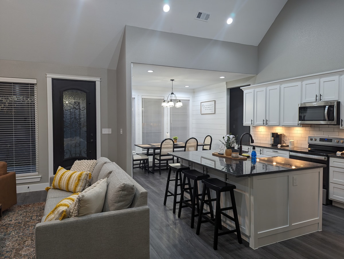 Come relax & enjoy country living in style at La Casa de Vaca. With 4 bedrooms so your family can rest well & an open kitchen, dining, & living room to enjoy life together, we hope to provide a peaceful stay. Have dinner on the patio while watching the sunset over the pasture, snuggle by the fireplace, or kick back in the theater streaming your favorite movies. We're also only 45 minutes from Ft. Worth. So, adventures like the Zoo, Texas Motor Speedway, & Stockyards are close by.