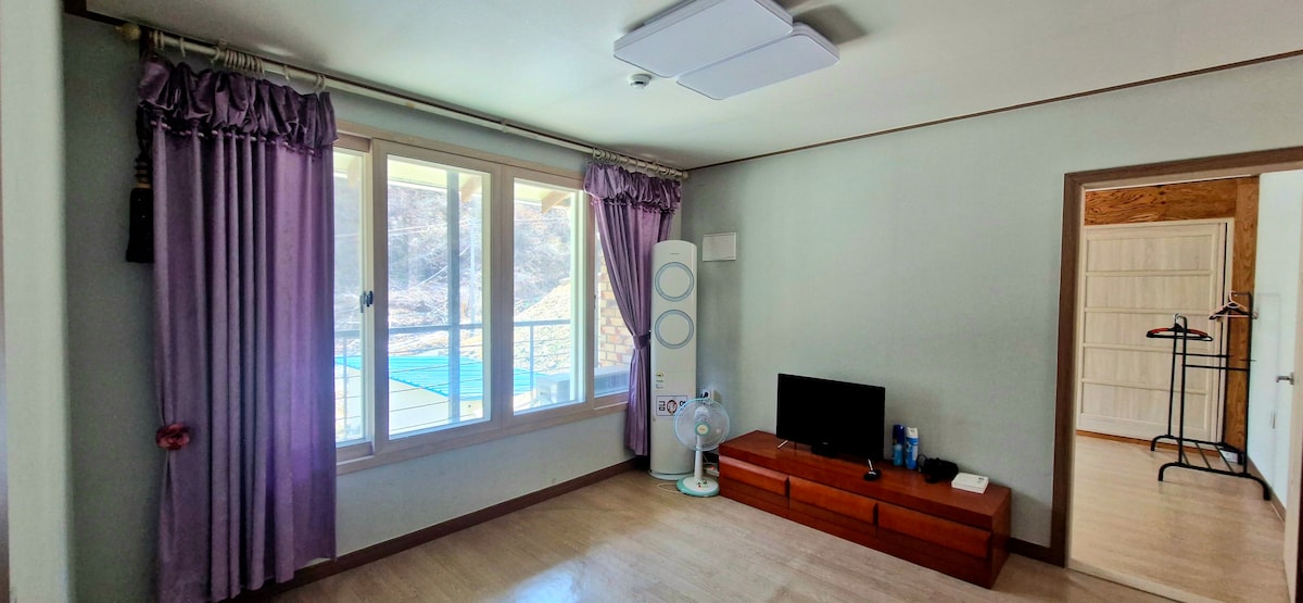 這個特別的空間包括私人住宅和非常寬敞的戶外空間。 所有空間僅在您入住期間對預訂人開放。 在夜晚享受火焰,同時觀賞星星和月亮。 在黎明之前,您可以享受輕鬆的空間氛圍和LED燈音樂。 下雨時,看著山谷,平房裡的燒烤是另一種幸福。 有遊樂場和山麓,所以不要錯過任何鍛煉,如人行道和羽毛球蟲。 在永門山( Yongmunsan )和江原山( Jungwon Mountain )徒步小徑後,請在膳宿公寓旁邊的水晶般清澈的山谷中享受療癒。 Vally景觀房間是一個房間,您可以躺在牀上,俯瞰山谷。 花園景觀房間是一個房間,您可以在這裡一起看到更大的空間、私人花園和遊樂場。 根據人數,兩間獨立房間中只有一間可供使用。 兩個房間都可以獨自使用,但需額外付費。 大自然的關係#谷#私人派對#燒烤# Fung #狗