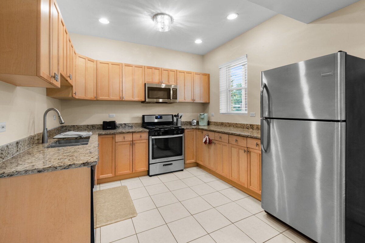 這間新翻修且設備齊全的 2 臥室 1 間浴室公寓,提供舒適和便利,非常適合商務旅客、醫療保健專業人士和加州大學附屬機構。 該單位位於充滿活力的伍德勞恩/海德公園街區,坐落在一條寧靜的林蔭大道上,配備現代化的設備與服務,包括室內洗衣機和烘乾機、高速Wi-Fi和專屬工作空間。 公共交通(Metra + CTA)僅幾步之遙,開車前往芝加哥市中心僅需15分鐘。