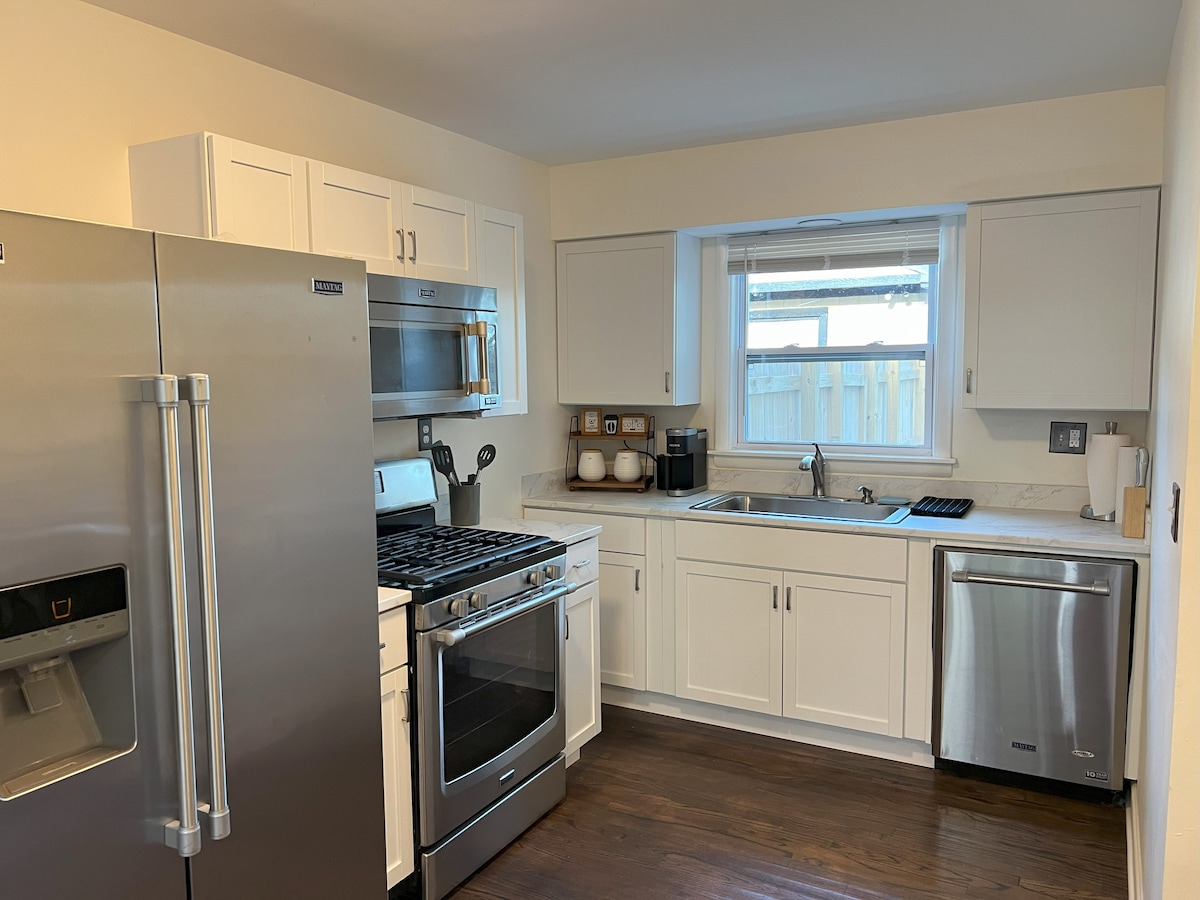 Clarendon Hills多戶住宅新翻修的套房。 主樓層:設備齊全的廚房/島台、用餐區域、客廳和帶壁爐的家庭房。 上層: 臥室1 -加大雙人床、衣帽間、獨立浴室/淋浴間。 臥室2 -雙人床、衣櫃。 臥室3 -大床、衣櫃。 客廳有拉出式沙發床。 家庭房間配有瓦斯壁爐,可通往露台/室外區域。 前往餐廳、商店(距離Oak Brook Mall幾分鐘路程)、Metra、O'Hare很方便。