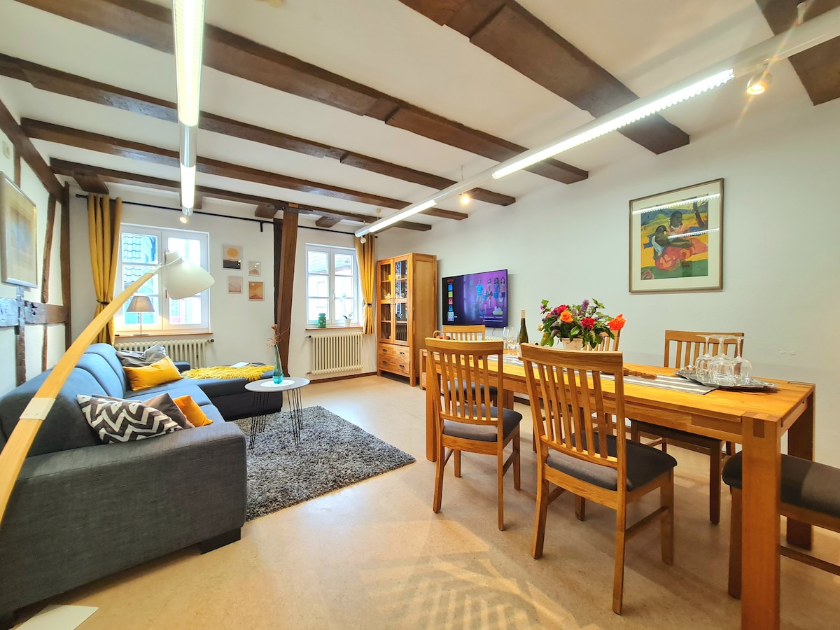 歡迎來到我們時尚舒適的半木製公寓,配有: 加→ 大雙人牀( 1,80公尺x 2.00公尺)和標準雙人牀( 1,60公尺x 2,00 ) → 沙發牀,配有集成牀墊( 1.40米x 2.00米) → 免費高速WiFi → 55英寸高清電視,配備NETFLIX、Magenta電視和RTL + → NESPRESSO咖啡 設備→齊全的廚房 → 日光浴室 →洗衣機/烘幹機共用 → 免費停車位, 還有另外兩間可容納4人和6人的公寓。