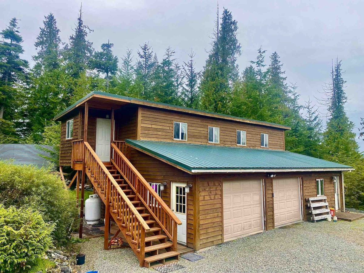 Peaceful 1 bedroom upstairs apartment with private entrance. Located on Big Salt Lake. Wifi, smart tv, living room, full kitchen, bathroom, bedroom with queen bed. Washer-dryer. Rental car available for a fee. No cleaning fee, the guest is expected to clean up after themselves. 3 miles from Klawock airport.
