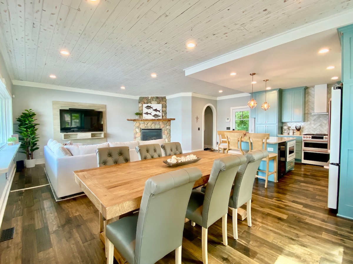 在精心設計的小屋放鬆身心,讓生活放鬆一點,放鬆身心,放鬆身心,俯瞰湖泊的新按摩浴池! 位於寧靜的777英畝楓樹湖上的翻新房源。 從家庭房間透過落地窗戶欣賞水景。 在設備齊全的廚房玩遊戲、烹飪您最喜愛的美食,或在智慧電視上觀看電影。 寬敞的客廳,適合閒逛! 這間舒適的小木屋全年都很有趣。 參觀當地啤酒廠或葡萄酒吧+城裡最好的咖啡就在路上!