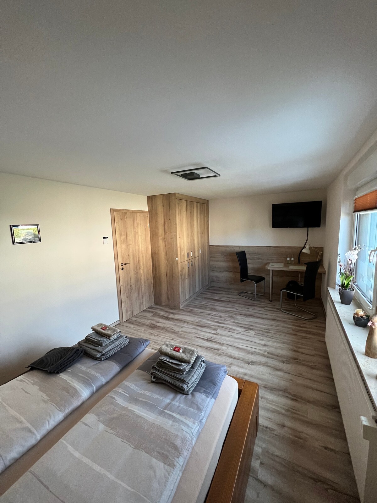 位於格羅森海恩市中心的現代通勤公寓。 雙層床最多可容納兩人,浴室配有淋浴間,空間寬敞。 提供冰箱、微波爐、水壺和 Senseo 咖啡機。 此外,還有基本的餐具。 床單和毛巾包含在住宿價格中。 歡迎詢問長期住宿。 祝好 Fäncy Home 的 Franzi