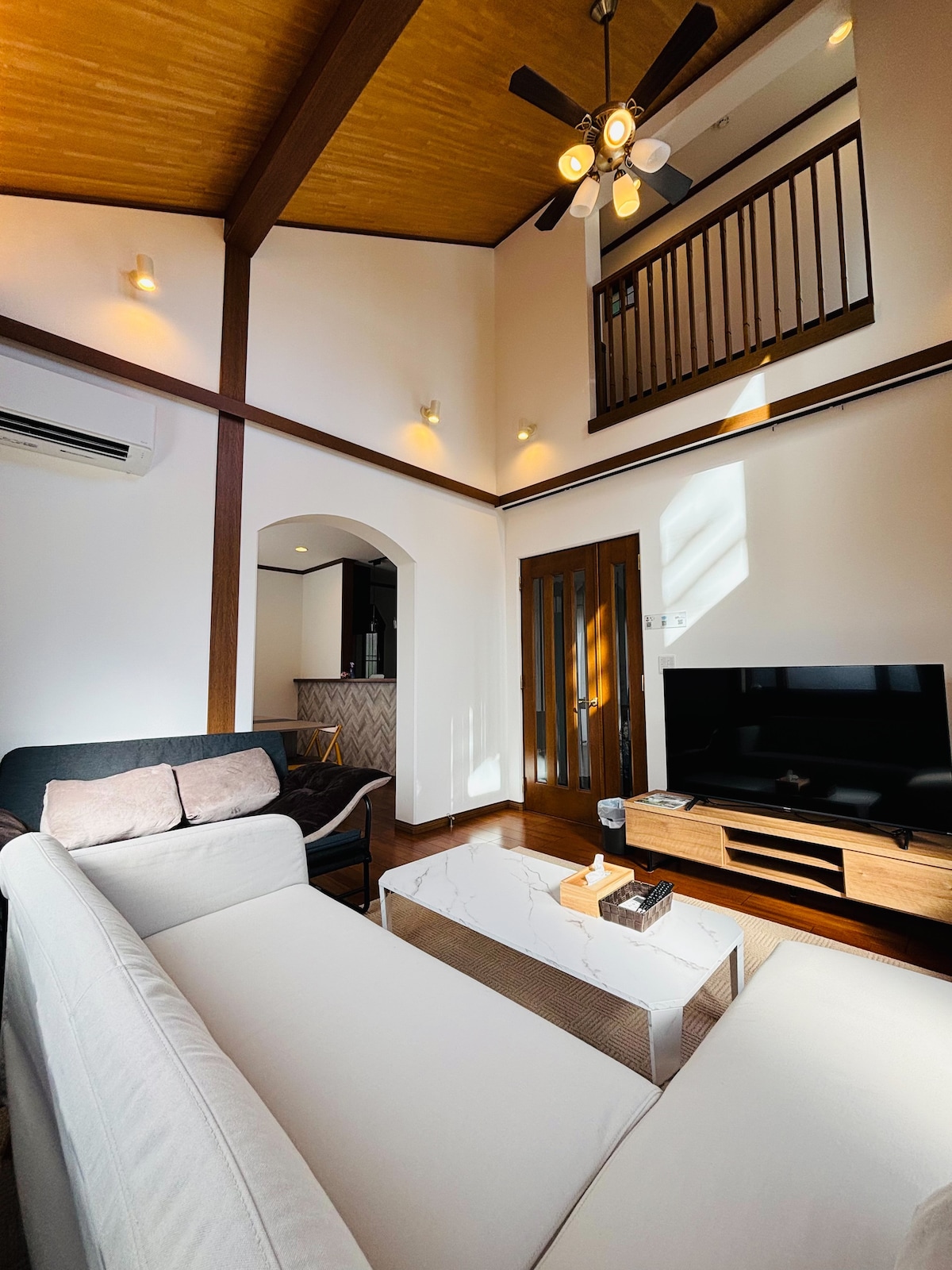 我們翻修了當地畫家的工作室,打造一間私人旅館。這個概念是您可以入住的博物館 您可以在整棟房子裡欣賞藝術和吉卜力的世界 非常靠近熱門的吉卜力公園,開車10分鐘(步行30分鐘) 整棟大樓是獨立的 步行10分鐘即可抵達熱門的溫泉設施和農夫市場 18張榻榻米大空間起居室和18間榻榻米餐廳廚房 已安裝65吋大型顯示器電視(LG) 寬敞的全套廚房,配有三個燃燒爐 200平方公尺的房子 所有房間都有6臺空調 高速無線網絡 我們提供9輛電動自行車(每天1000日元,我們與2棟房屋共用,因此您需要預訂) 3輛車的停車位( 1輛在建築物內, 2輛在場外) 入住這間獨一無二的適合家庭入住的房源,留下美好的回憶。 -設施 冰箱、洗衣機、瓦斯烘乾機、微波爐、沖水馬桶(馬桶)、電鍋、電熱水壺、吹風機、電熱爐、烤箱、煎鍋、鍋子、玻璃杯、碗盤、無線吸塵器