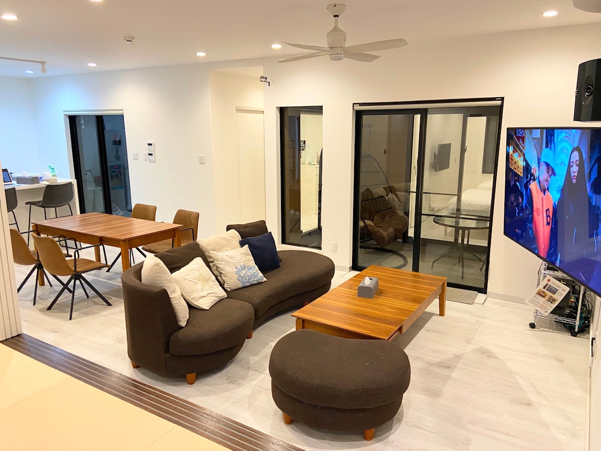 *大型テーマパーク「JUNGLIA OKINAWA」に一番近い宿 *最寄りのコンビニまで車で2分(ローソン) *24時間スーパーまで8分(AEON ・MaxValu) ★World TV 香港・台湾・韓国・アメリカなど各国に対応。他の宿にはないハイレベルなTV環境が整っています。 ★Sauna 国産木材を贅沢に使った「総ヒノキ造り&サーモウッド」のバレルサウナ! バレルサウナ国内トップブランド・BURROW(バロウ)沖縄初上陸! 輸入品では味わえない贅沢なヒノキの香りを感じるサウナを体験ください。 *温度は95℃に設定 ★露天ジャグジー 露天で開放的 サウナ後の水風呂にも最適 ★BBQ テラスとコート(中庭)に2台完備 雨が降ってもBBQが出来る! ★カラオケ( 無料) 本格的カラオケ(JOYSOUND) 部屋がカラオケBOXに変身します。 ★全室アレクサ音楽聴き放題。 ★エアー遊具&ウォータースライダー(4月〜10月) 海に負けない子供達の笑顔があります。 ファミリーからグループまでオールシーズン遊べる宿を目指してます。