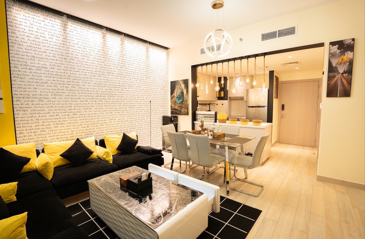 在Masdar市中心這個設計時尚又安靜的空間中好好放鬆身心,非常靠近亞斯島!這間公寓完美融合了舒適、風格和便利。 -距離阿布扎比國際機場10分鐘,讓您輕鬆抵達和離開。 -步行1分鐘即可抵達附近的商場,有家家樂福超市,可購買所有必需品。 -距離亞斯島(Yas Island)的熱門景點13分鐘路程。法拉利世界、亞斯水世界、阿提哈德競技場和亞斯購物中心。