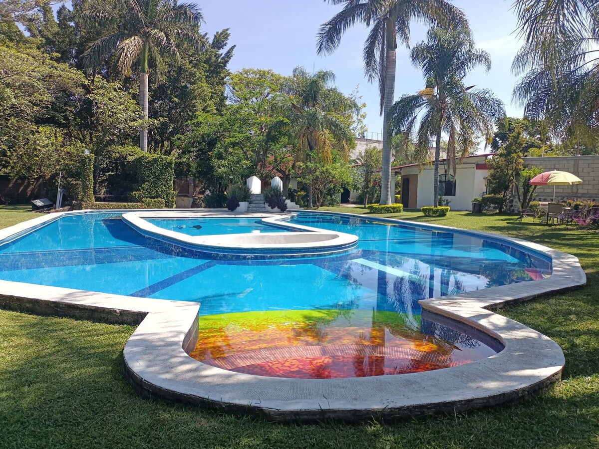 Margarita是為您設計的空間,讓您在寬敞的房間中享受溫暖的天氣,配有獨立全套浴室,最多可容納9人。 我們的一些設施包括:帶水花樹的清新泳池、營火區域、設備齊全的廚房和酒吧、躺椅、palapa、公共浴室、綠色區域、WiFi、電視娛樂中心、寬敞的停車位,以及您可以享受我們的temazcal的一切。