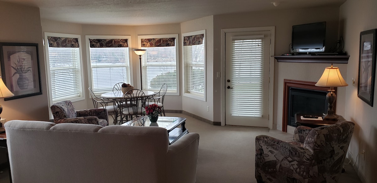 T312 - Tagalong高爾夫度假村寬敞的1 BD/1 BA公寓。 這個單位有一個完整的廚房、客廳、壁爐,並在紅雪鬆湖( Red Cedar Lake )走出露臺。