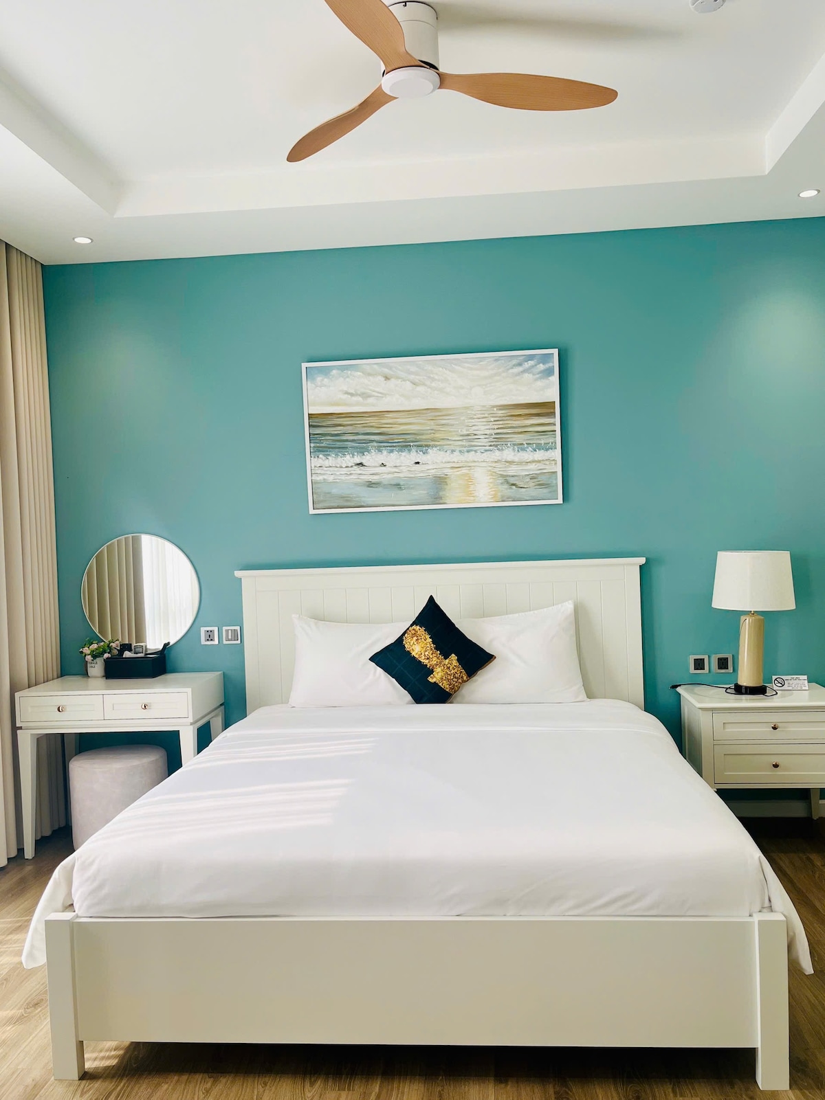 海風客房(T3)~35平方公尺,綠色調,配有獨立廁所;適合2–4位房客入住,非常適合家庭/朋友團體入住。 海洋公園2號位置,河內,靠近海邊和湖泊和公共設施。 同一樓層可新增額外房間(約10平方公尺) 設施包括:私家車、洗手乳和洗髮精(預留) 海風(3樓)~35平方公尺,清新藍色主題,獨立套房;適合2–4位房客、小家庭或好友。 位於海洋公園2號,靠近潟湖和設施。 同一樓層的可選額外房間(約10平方公尺) 附加服務:私家車、美甲和洗頭(預訂)