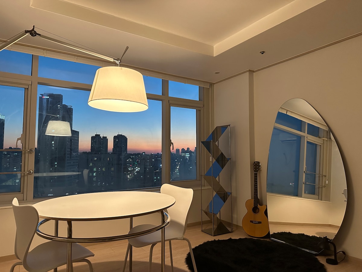 從 6 則評價中獲得 4.67 的平均評分(滿分 5 分)日落城市景觀(65 吋三星 4K 電視、永登浦站 6 分鐘、永登浦市場站 8 分鐘、文來站 15 分鐘)
